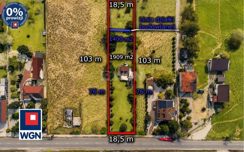Powierzchnia działki: 1909 m2 (szer. 19 m x dł. 103 m)